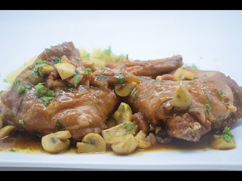 HOW TO COOK RABBIT STEW COOKED IN RED WINE - Belgian Rabbit Recipe - rabbit legs mushrooms red wine flour bacon thyme garlic onion Melt the butter in the pan, brown the rabbits legs, set aside the rabbit legs and saute the onion on ...
